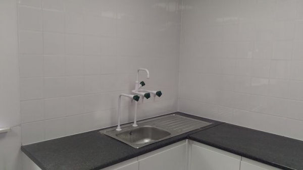 - Install new kitchen units, complete with worktop, sink and laboratory taps